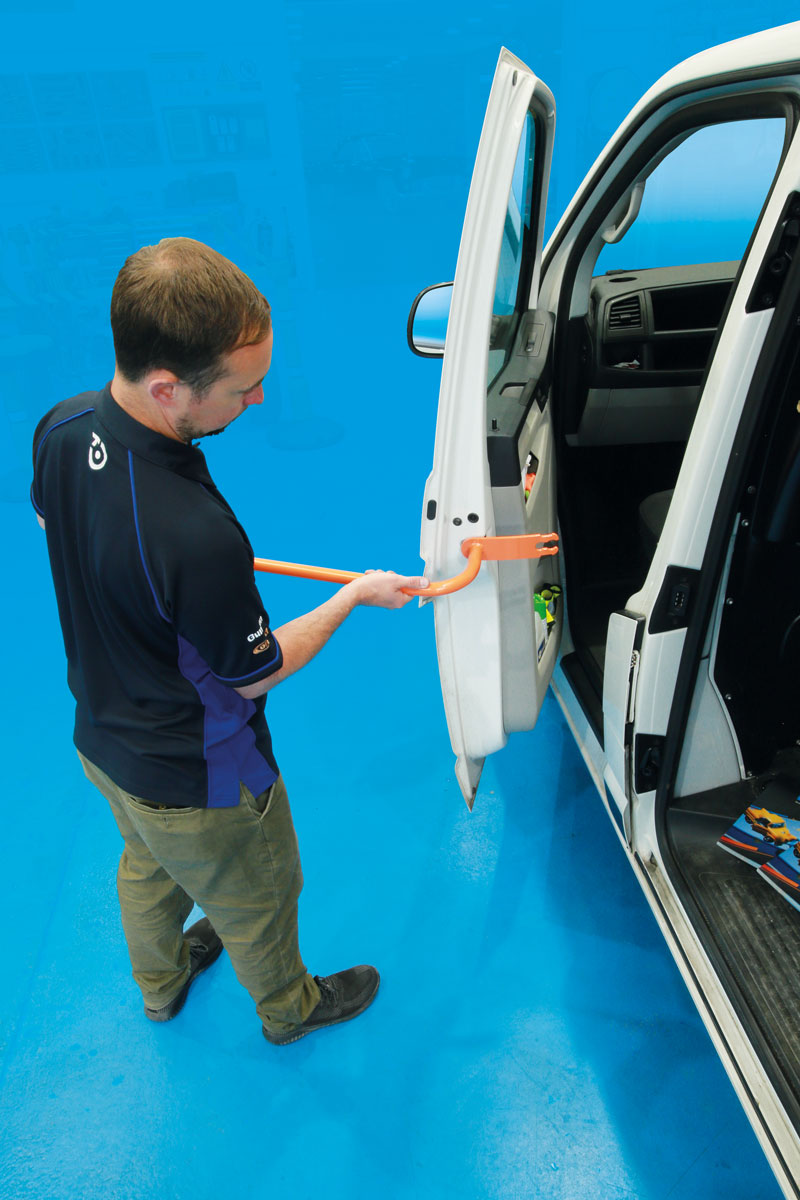 - Se met facilement en place et tire la portière contre l'outil pour éviter toute distorsion ou endommagement du panneau de la portière.