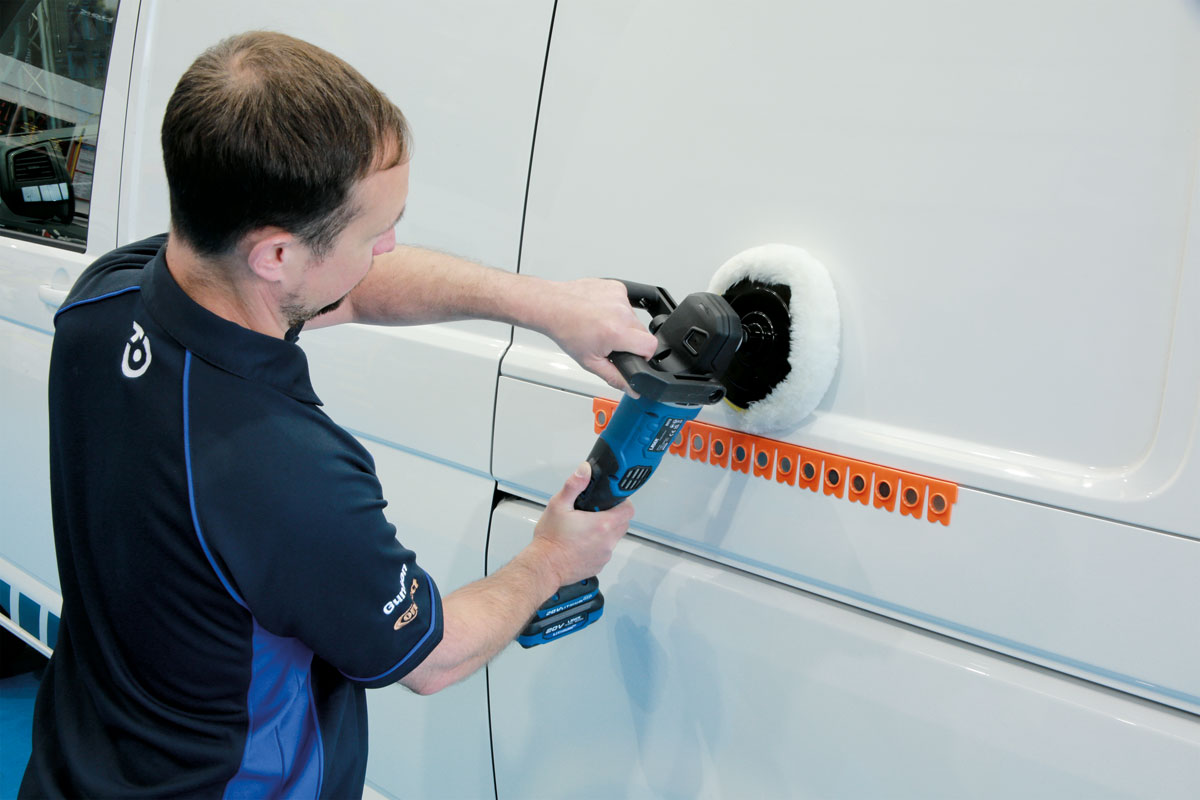 • Flexibler magnetischer Kantenschutz zum Schutz umliegender Karosserieteile beim Schleifen.