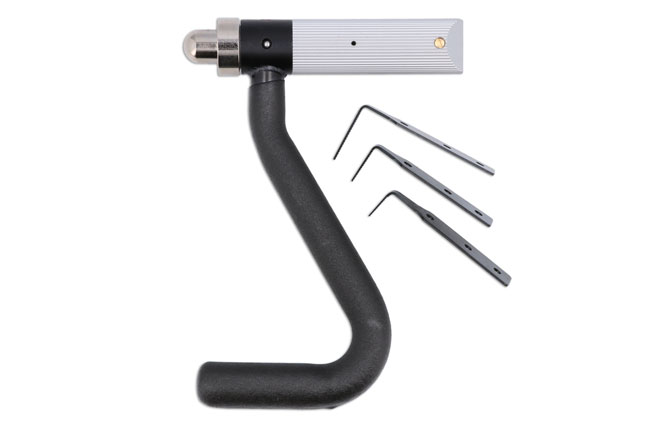 Das Power-Tec 92722 Messer für Windschutzscheibendichtungen hat einen speziell geformten Griff, der sicherstellt, dass die Klinge im richtigen Winkel gehalten wird, wenn sie durch die Windschutzscheibendichtung oder das Dichtmittel gezogen wird. Mit dem oberen Knopf kann die Richtung der Klinge um 180 Grad gedreht werden, so dass das Messer schnell von Rechts- auf Linkshandbetrieb umgestellt werden kann.