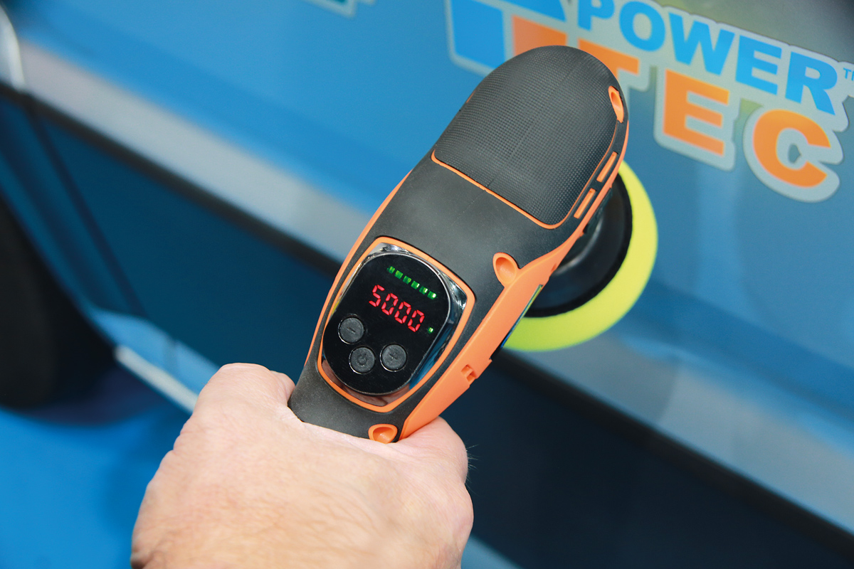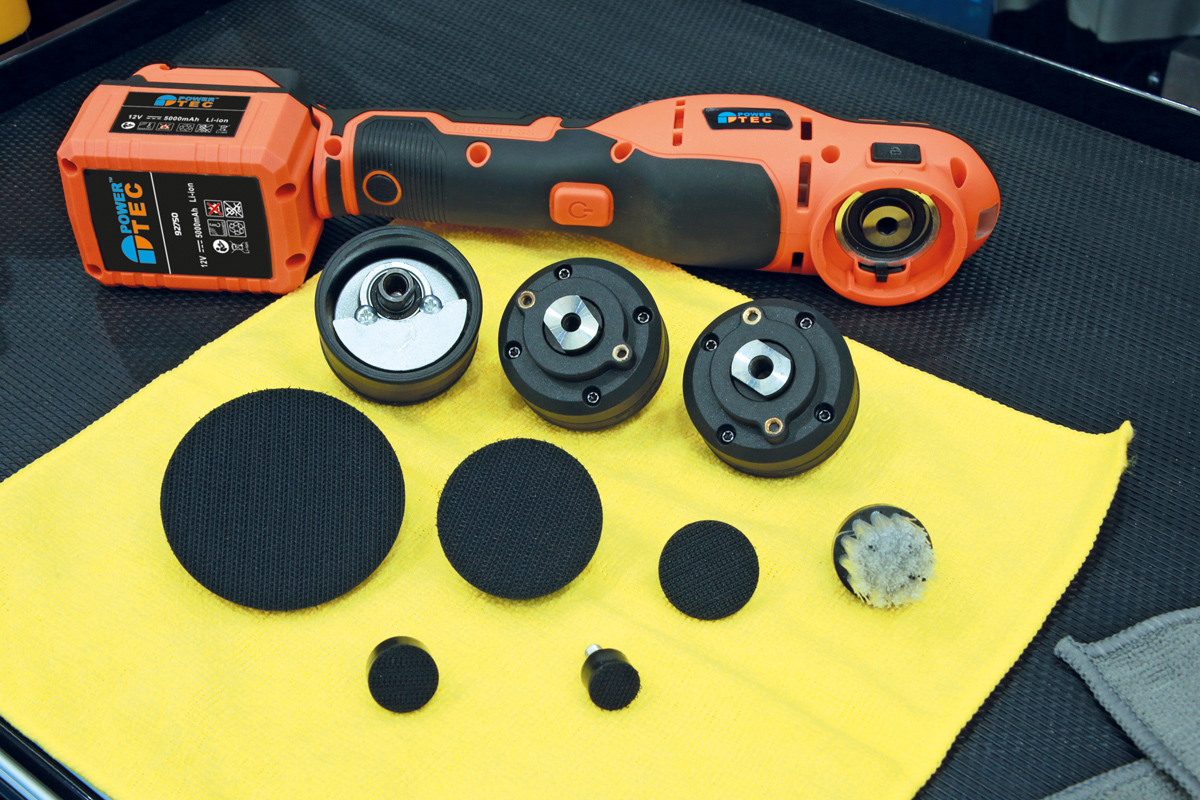 Der Power-TEC 92750 Akku-Polierer verfügt über einen bürstenlosen Motor mit sechs Geschwindigkeitsstufen sowie über drei austauschbare Getriebeköpfe. Je nach Pad-Durchmesser und gewünschter Drehzahl kann der passende Kopf gewählt werden. Mit zwei 12-V-Akkus für zusätzlichen Komfort. Der leichtere 2,5-Ah-Akku verringert das Gewicht bei Arbeiten über Kopf (zum Beispiel beim Auspolieren von Kratzern auf Autodächern). Das macht dieses Gerät ideal für Aufgaben, für die pneumatische Poliermaschinen nicht geeignet sind. Ebenfalls im Lieferumfang enthalten ist eine Auswahl an kompakten Polierköpfen für kleine bis mittelgroße Arbeitsbereiche (z. B. für lackierfreies Ausbeulen) sowie ein Netz-Ladegerät mit zwei Anschlüssen und einem standardmäßigen 3-poligen UK-Stecker.