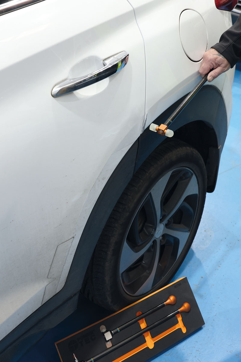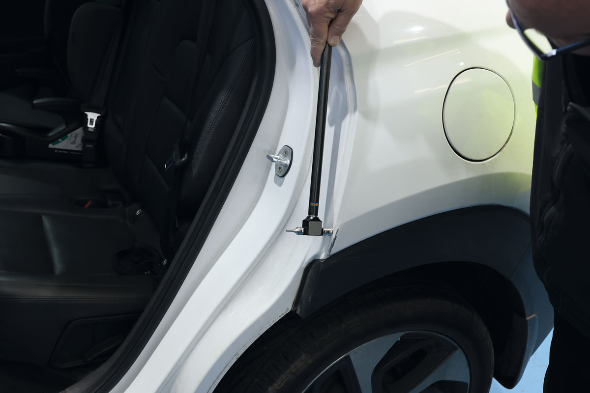 Carbonstrike hammers, commonly known by professionals as knock-down or blending hammers, are specifically designed for paintless dent repair (PDR). Their main attribute is precision and control, helping to reduce "high spots" or "crowns" created during the dent removal process. Carbonstrike hammers are constructed from carbon fibre, providing extra strength while remaining lightweight for improved balance. The user can accurately control each strike, and the spherical handle offers additional comfort, enabling optimal results with minimal effort and fatigue.