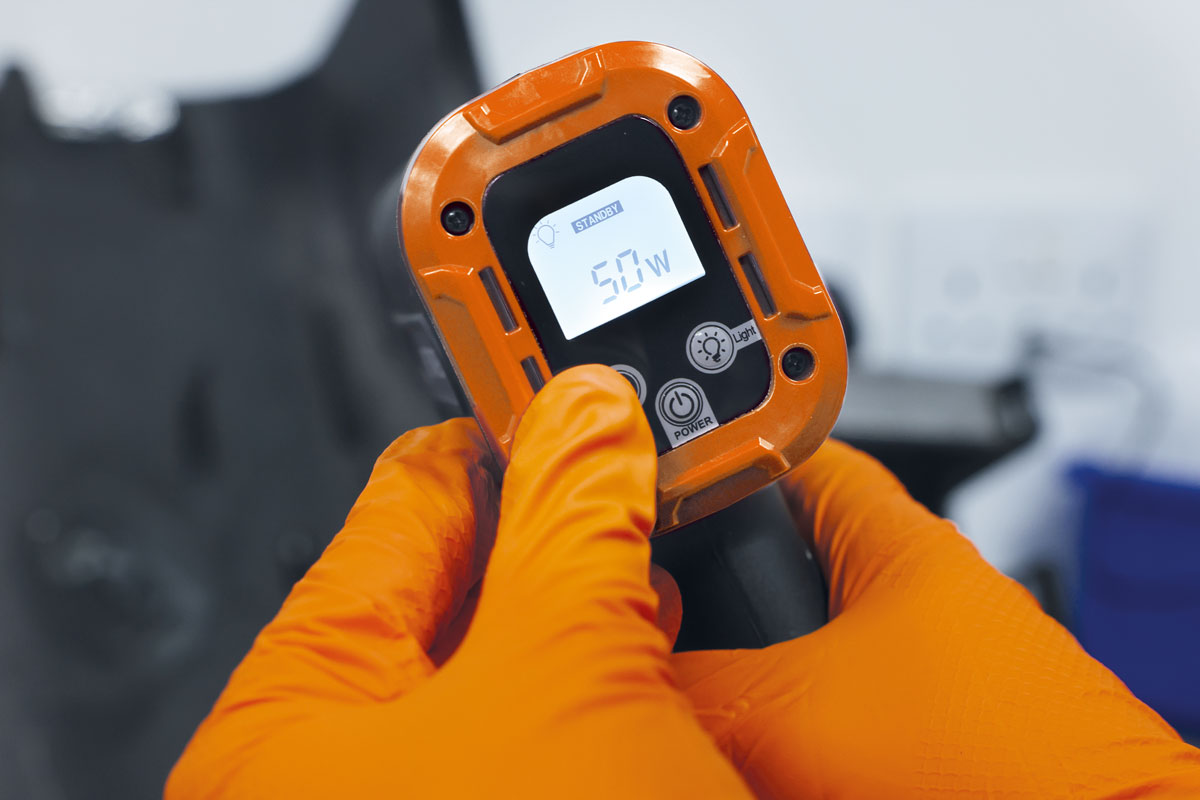 • Netzbetriebenes, temperaturverstellbares Heißheftgerät. Ausgestattet mit LED-Licht für Arbeiten in dunklen Bereichen.