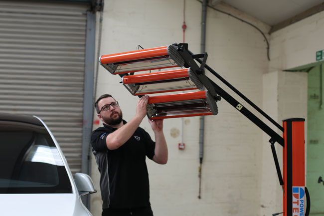 Professional bodyshops know and trust Power-TEC products and this new infrared paint drying lamp (part number 92476) is a high quality and versatile solution to quick air drying of spot and panel repairs.