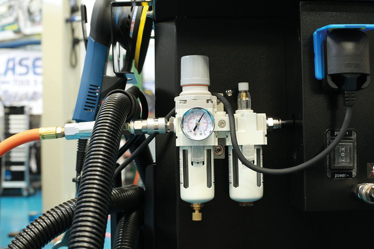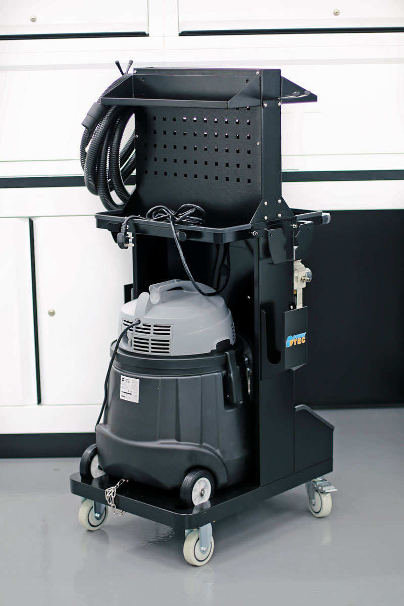 - Workshop dust extractor, supplied complete with work station featuring 2x air & mains power outlets, suitable for both wet & dry extraction, with fluid level monitoring.