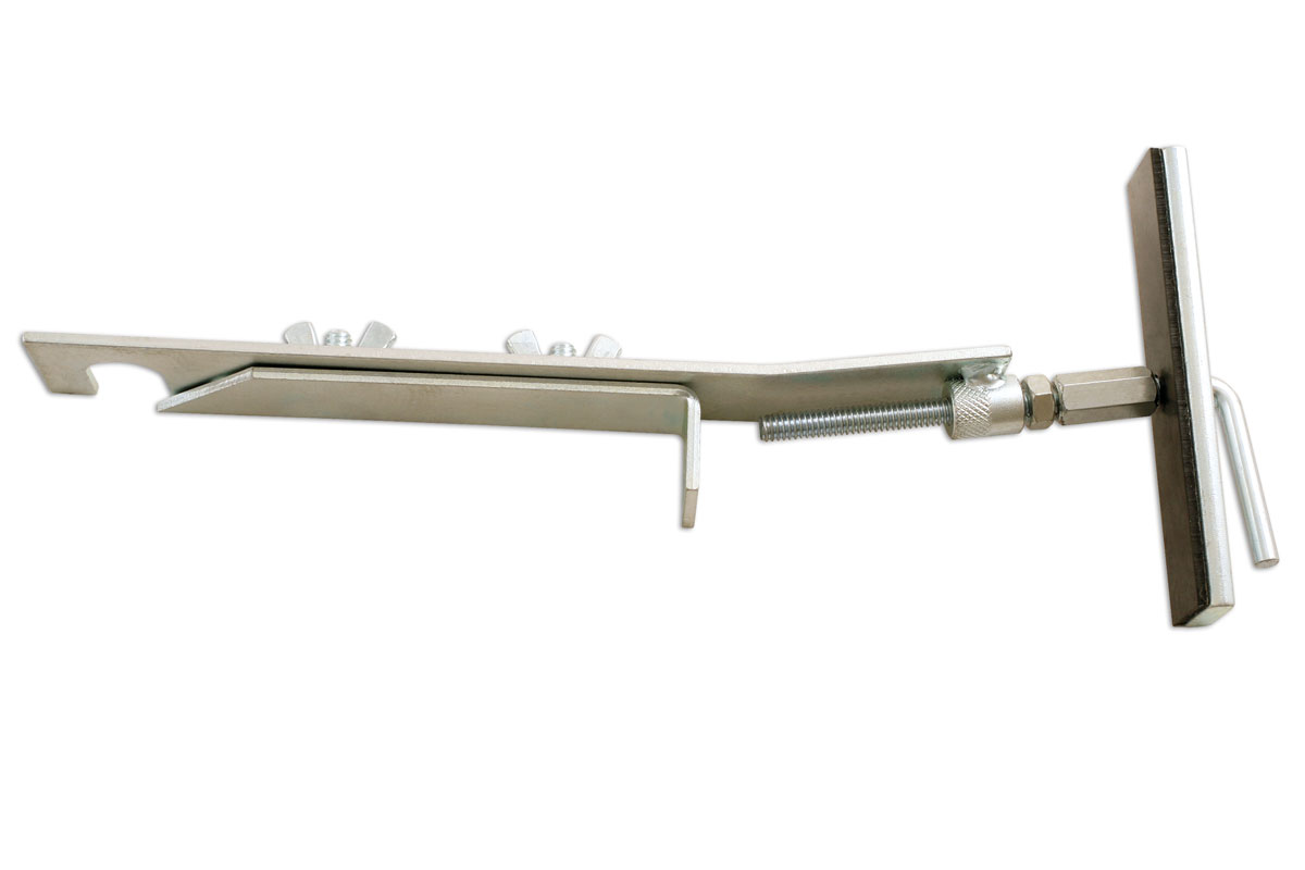Car door jammer securely holds the door open whilst hammering, grinding, sanding or painting. A useful tool for paintless dent repairs or auto body work.