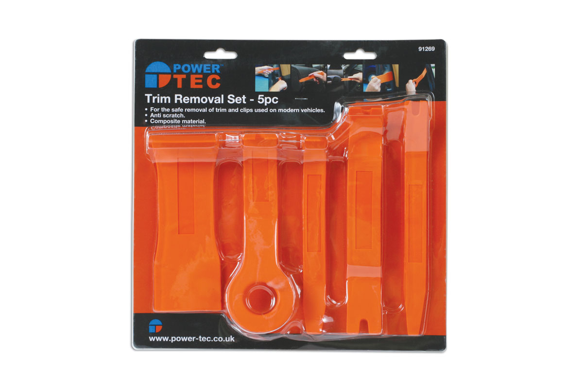 A set of 5 composite trim clip removal tools. Ideal for use on clips, fasteners, door cards and fascias.