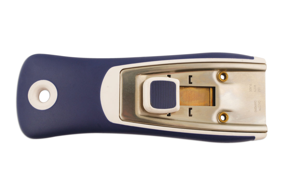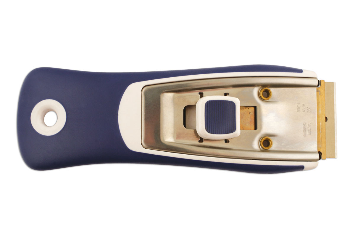 A professional scraper with soft grip handle and a retractable blade. Ideal for the removal of stubborn adhesives, such as stickers and glue etc.