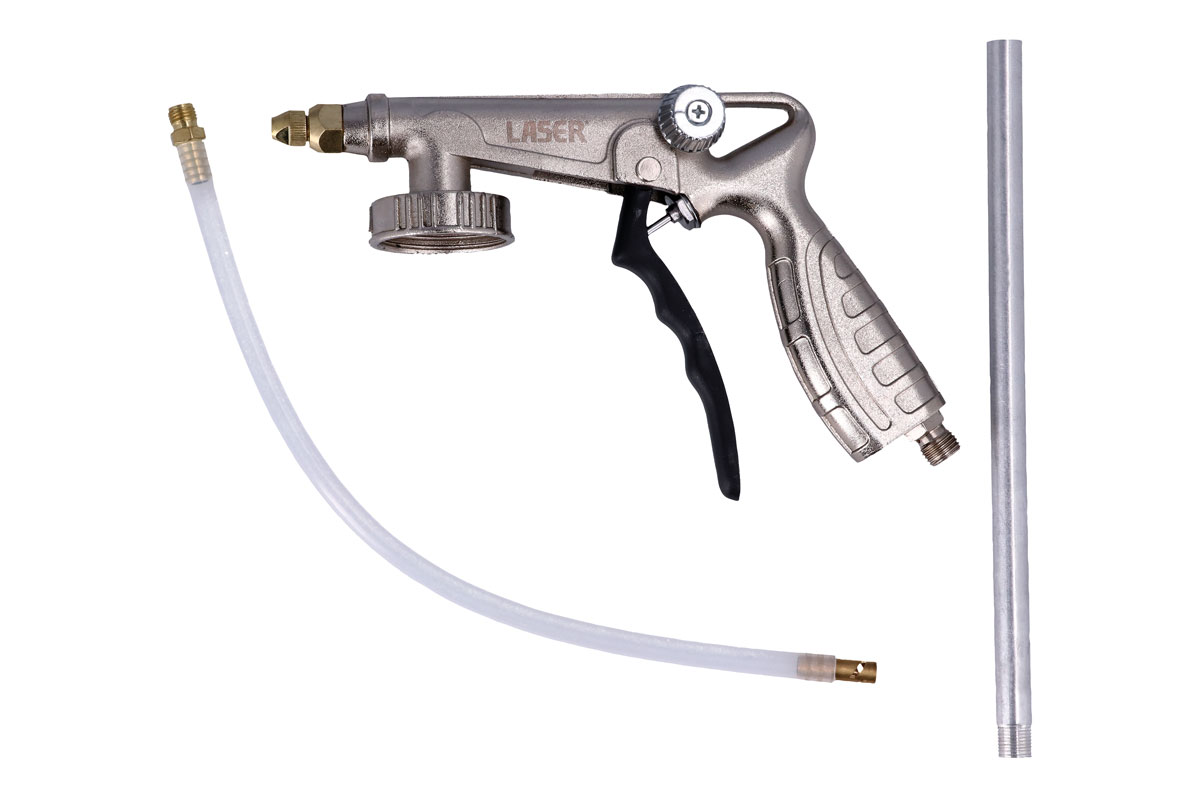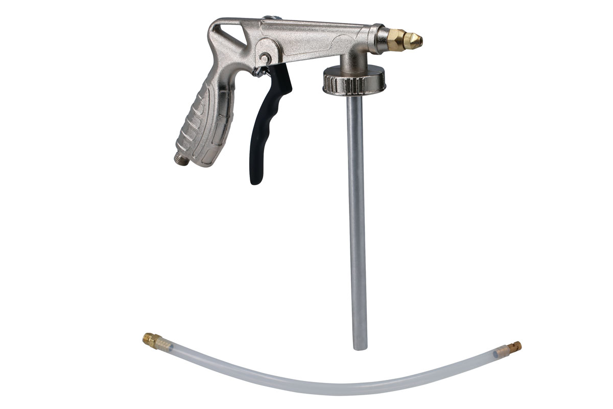 Druckluftpistole für Unterbodenschutz zum effizienten Aufbringen von Unterbodenschutzprodukten; mit 30-cm-langem Schlauch zum Aufsprühen des Produkts auf schwer erreichbare Stellen.