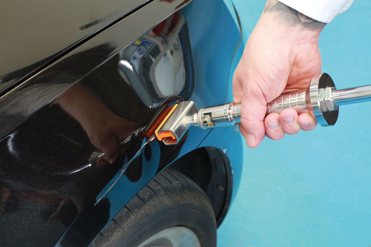 • Zur Verwendung im Rahmen eines lackierfreien Ausbeulens bei Einsatz mit einem Gleithammer.