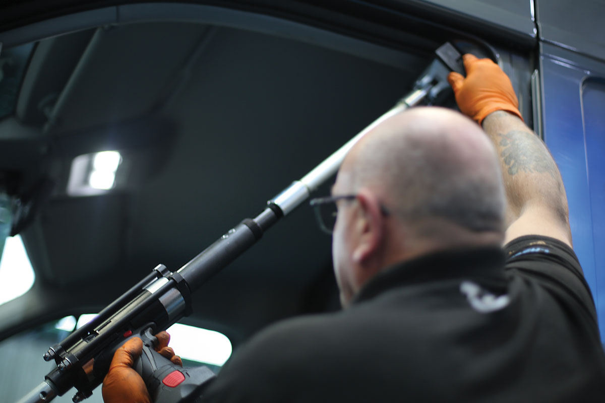 Free from hoses or cables, the portable Electro Power push-pull system from Power-TEC (part number 92691), is powered by a Li-ion 14.4V 2.0Ah battery, and provides significant pushing, pulling, and spreading capabilities for various tasks. With a powerful five-tonne capacity and a 130 mm piston stroke, this compact tool delivers substantial force for tasks demanding serious metal reforming. Whether it's straightening and re-aligning door aperture frames, repairing panel work or dent pulling, this powerhouse from Power-TEC is up to the challenge. Its space-saving dimensions and the lack of external cabling or hydraulic pumps and pipes makes this system ideal for use in restricted spaces.