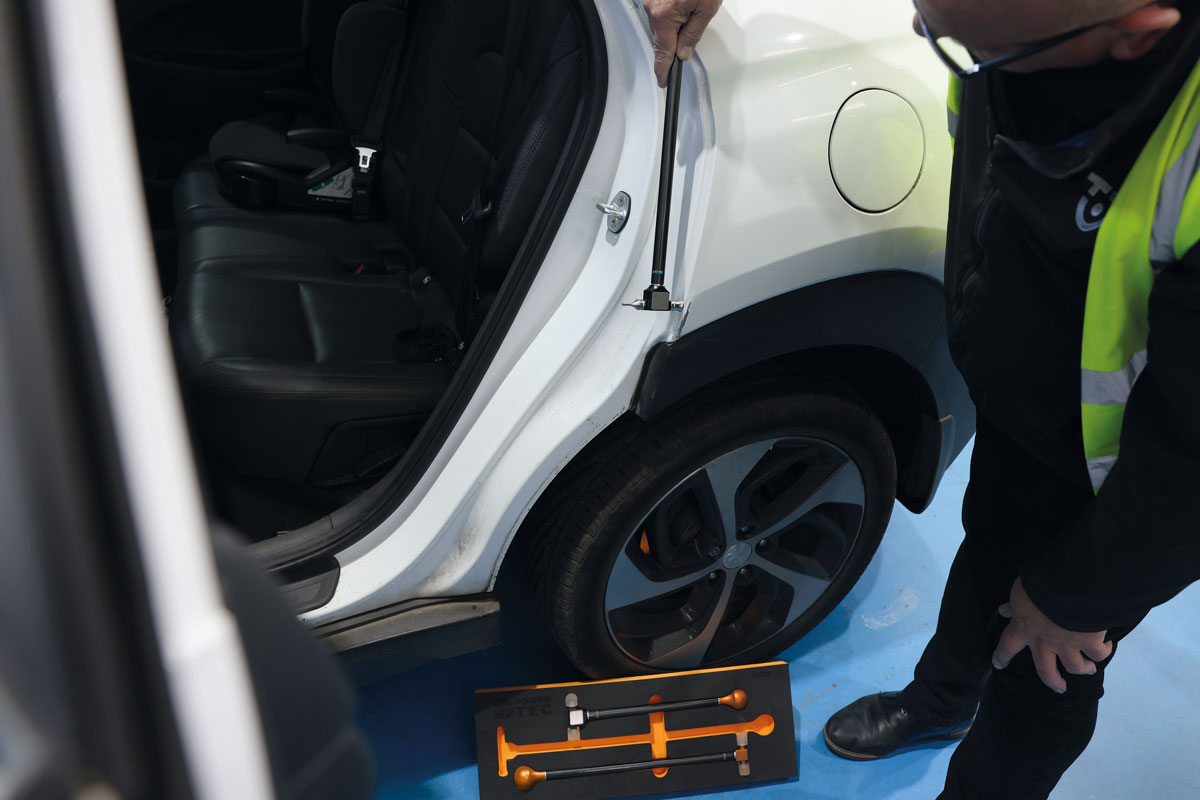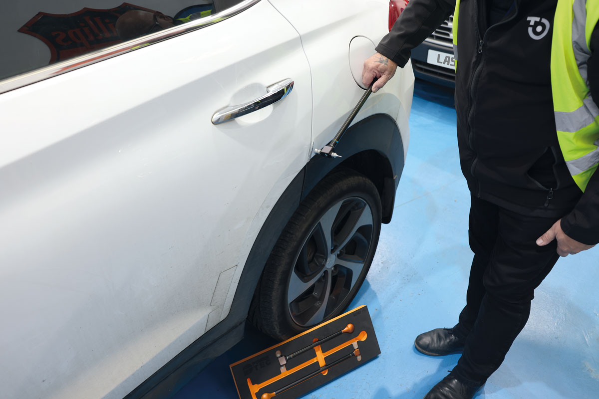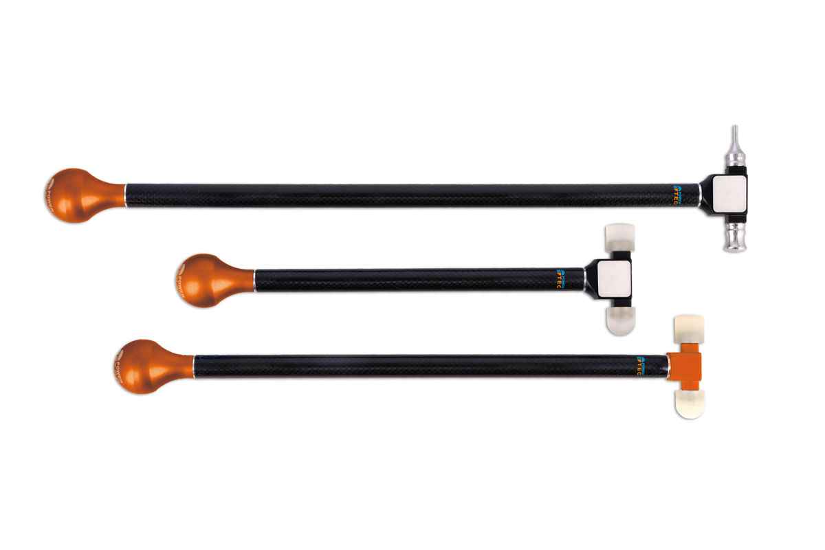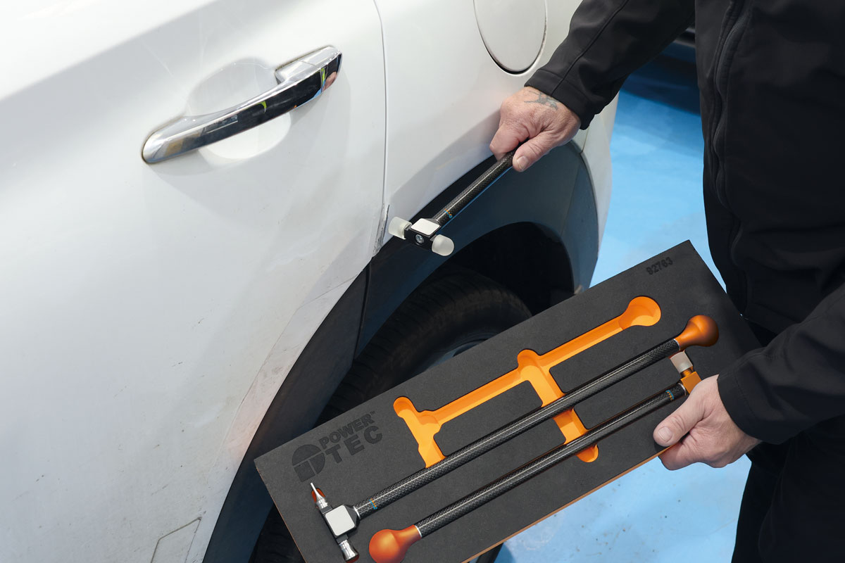 Carbonstrike hammers, commonly known by professionals as knock-down or blending hammers, are specifically designed for paintless dent repair (PDR). Their main attribute is precision and control, helping to reduce "high spots" or "crowns" created during the dent removal process. Carbonstrike hammers are constructed from carbon fibre, providing extra strength while remaining lightweight for improved balance. The user can accurately control each strike, and the spherical handle offers additional comfort, enabling optimal results with minimal effort and fatigue.