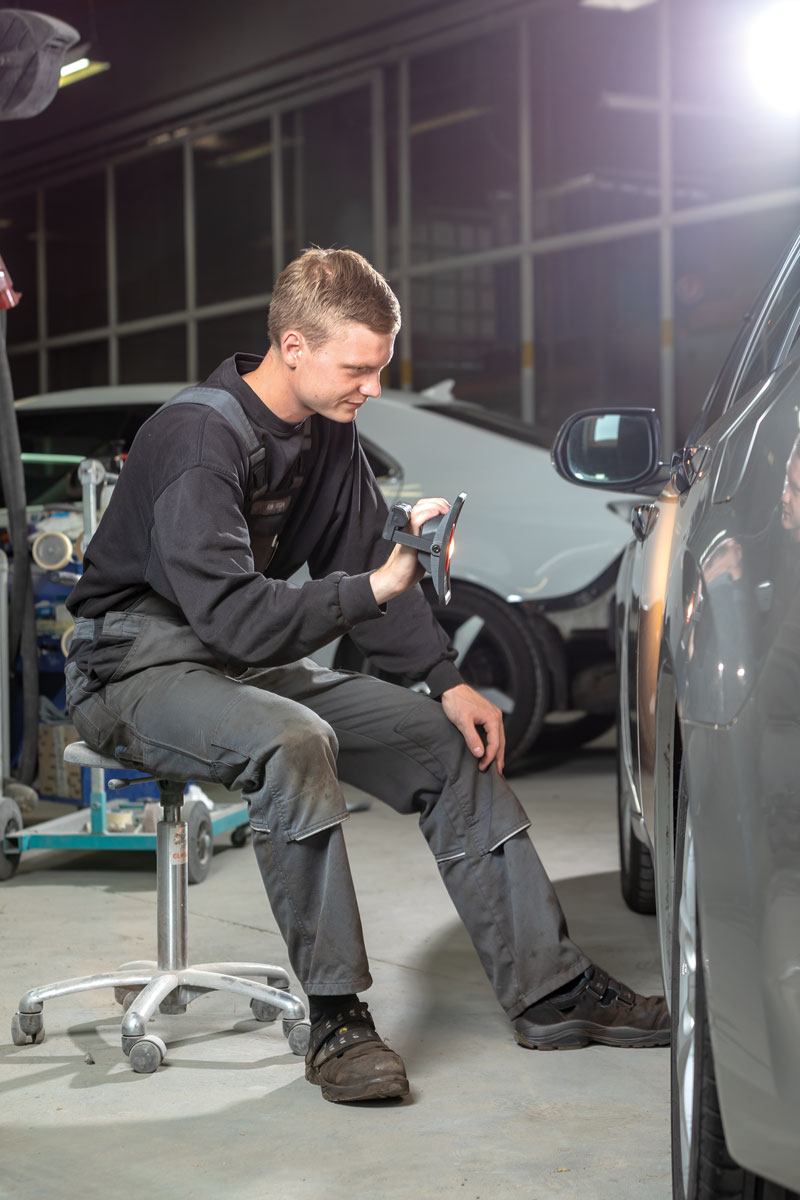 Beleuchtungslösungen für Autolackierereien. Die Beleuchtungslösungen von Scangrip Colour Match wurden speziell für Autolackierereien entwickelt. Sie helfen bei Farbabstimmung, Aufbereitung sowie allgemeinen Lackierarbeiten und können überall dort eingesetzt werden, wo lackierte Oberflächen überprüft werden müssen. Die COB (Chip on Board)-LED-Technologie garantiert eine einzigartige, einheitliche und völlig gleichmäßige Ausleuchtung mit nur einem Schatten, weshalb sie besonders effektiv bei der Aufbereitung und Farbabstimmung ist. Die Farbtemperatur (KELVIN) entspricht exakt den spezifischen Anforderungen an effizientes Arbeitslicht in der Automobillackierung. Die neu erfundene CCT-SCAN-Funktion ermöglicht es, die Oberfläche eines Objekts mit den verschiedenen verfügbaren Farbtemperaturen im Bereich von 2500 bis 6500 K zu scannen. Die CCT-SCAN-Funktion bietet optimale Bedingungen für genaueste Farbabstimmung und das Hervorheben und Erkennen von Lackfehlern. 03.5658 Multimatch R Die Multimatch R ist eine praktische und leistungsstarke, wiederaufladbare LED-Arbeitsleuchte für die Prüfung und Aufbereitung. Sie bietet eine Lichtleistung von bis zu 1.200 Lumen. Die Multimatch R verfügt über eine einzigartige, stufenlose CCT-SCAN-Funktion. Durch Aktivieren der CCT-SCAN-Funktion scannt die Arbeitsleuchte automatisch die Oberfläche des Objekts mit dem gesamten Farbtemperaturspektrum von 2500 bis 6500 K. Die CCT-SCAN-Funktion kann jederzeit deaktiviert werden, so dass das Licht an die jeweilige Prüfaufgabe angepasst werden kann. Sie ist das ultimative Hilfsmittel für den professionellen Lackierer, das ideale Bedingungen für eine genaue Farbabstimmung sowie das Hervorheben und Erkennen von Lackfehlern bietet. Leicht zu tragen und ergonomisch geformt für einen sicheren Halt am Griff. Die starken integrierten Magneten garantieren eine flexible Befestigung. Äußerst flexible Einsatzmöglichkeiten für die Innenraumprüfung bei Fahrzeugen und die Inspektion anderer enger Bereiche. Diese Arbeitsleuchte ist für die direkte Montage am Scangrip Radständer, Teile-Nr. 03.5682, vorgesehen. Die Multimatch R kann an der unteren Halterung des Scangrip Radständers als zweite Leuchte montiert werden, um auch von unten zu leuchten. Diese duale Leuchtenoption bietet eine perfekte, schattenfreie Ausleuchtung sowohl von der Ober- als auch von der Unterseite bei Arbeiten an der Seite von Fahrzeugen.