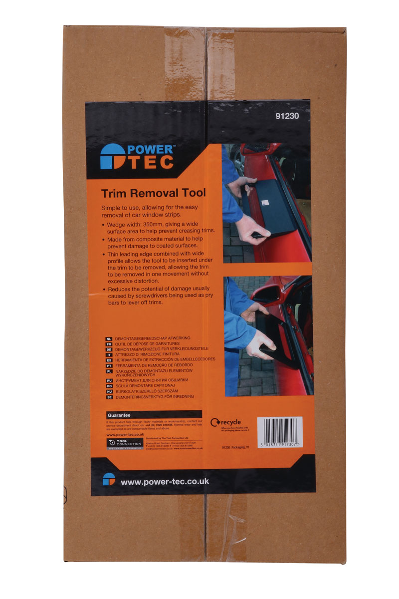 - Thin leading edge combined with wide profile allows the tool to be inserted under the trim to be removed, allowing the trim to be removed in one movement without excessive distortion.