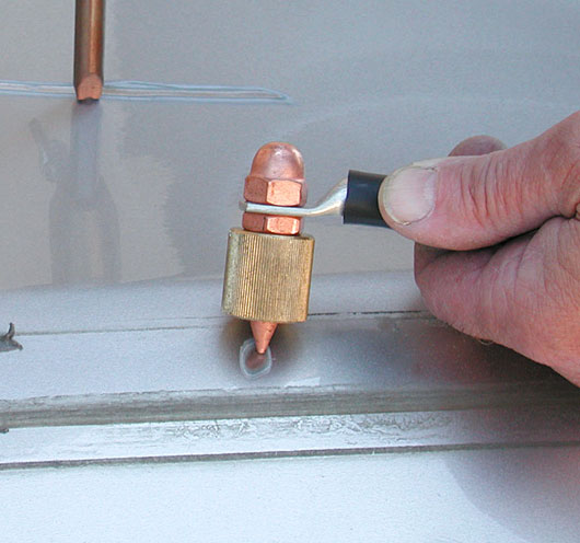 - Sand off small area, using welder gun as earth, weld point of spot earth to panel.