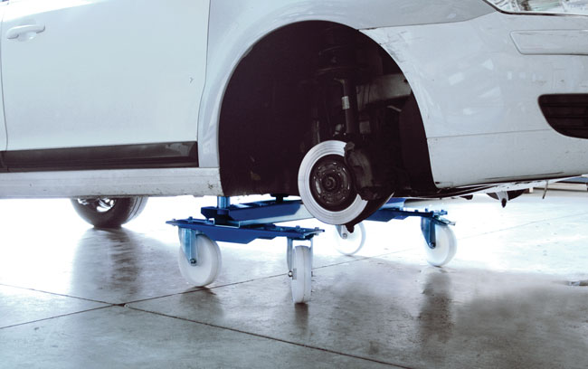 Ce chariot permet de déplacer des véhicules et des carrosseries endommagés dans le garage