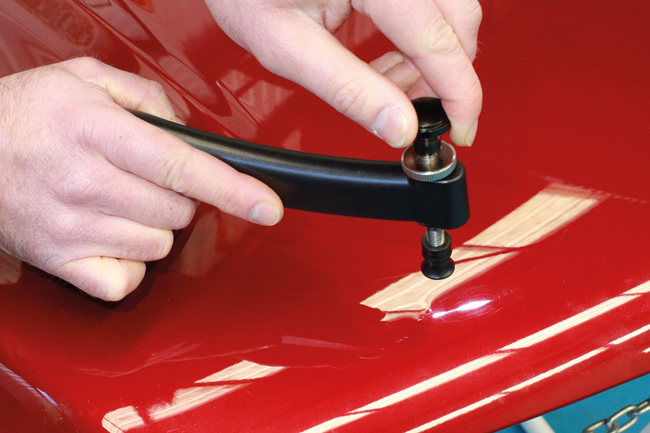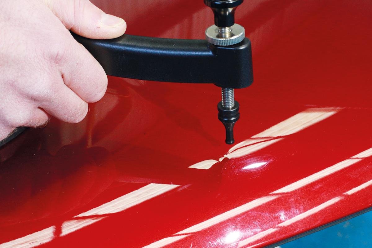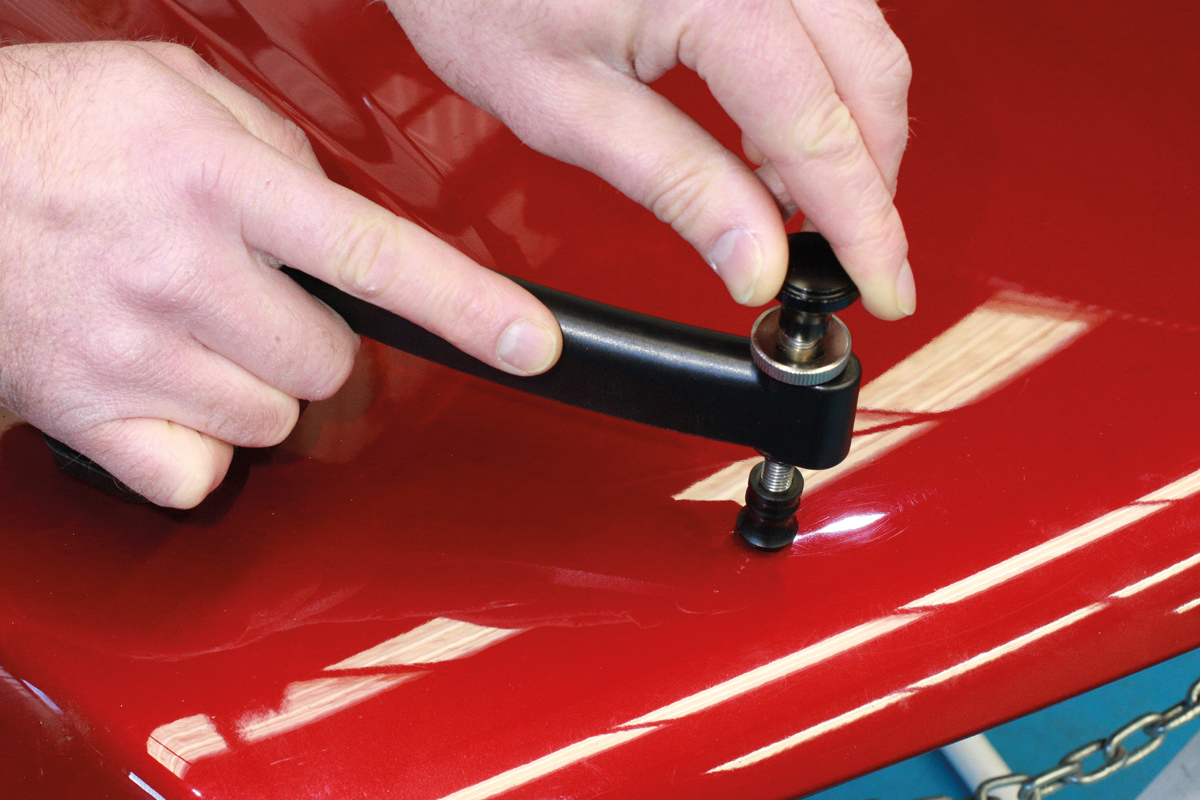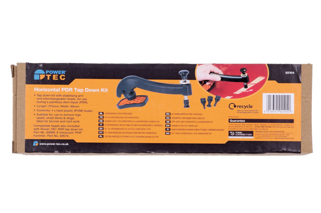 - Tap down kit with stabilising arm & interchangeable heads, for use during a paintless dent repair (PDR).