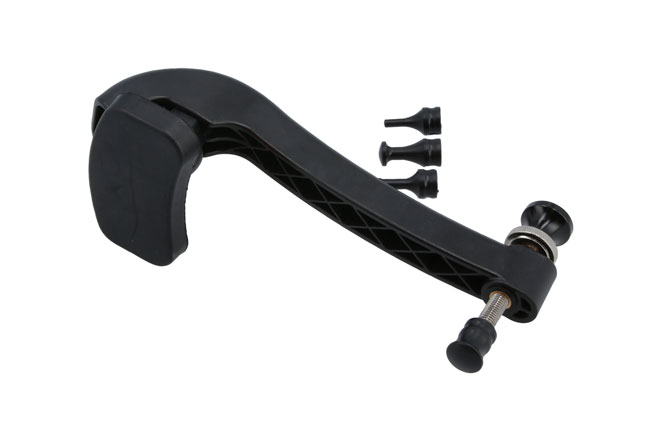 A stabilised tap down kit, ideal for use on horizontal vehicle bodywork panels including bonnets and roofs, suitable for gently knocking down high spots and removing small dents and dings. It features a stabilising arm with an adjustable rubber coated foot (allowing for 30° of movement), together with four interchangeable heads, to enable a precise and repeatable tap down action.