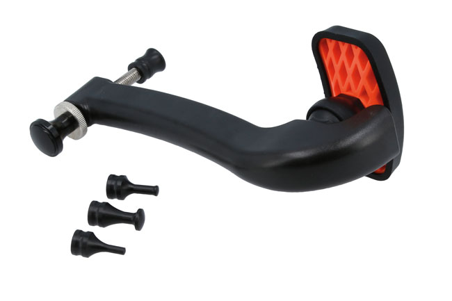 Stabilisierter Ausbeulsatz, ideal für den Einsatz an horizontalen Karosserieteilen, einschließlich Motorhauben und Dächern, geeignet zum sanften Ausbeulen erhöhter Stellen und zum Entfernen kleiner Dellen und Beulen. Mit Stabilisierarm mit verstellbarem, gummiertem Fuß (der eine Bewegung von 30° zulässt) und vier austauschbaren Köpfen, die einen präzisen und wiederholbaren Ausbeulvorgang ermöglichen.
