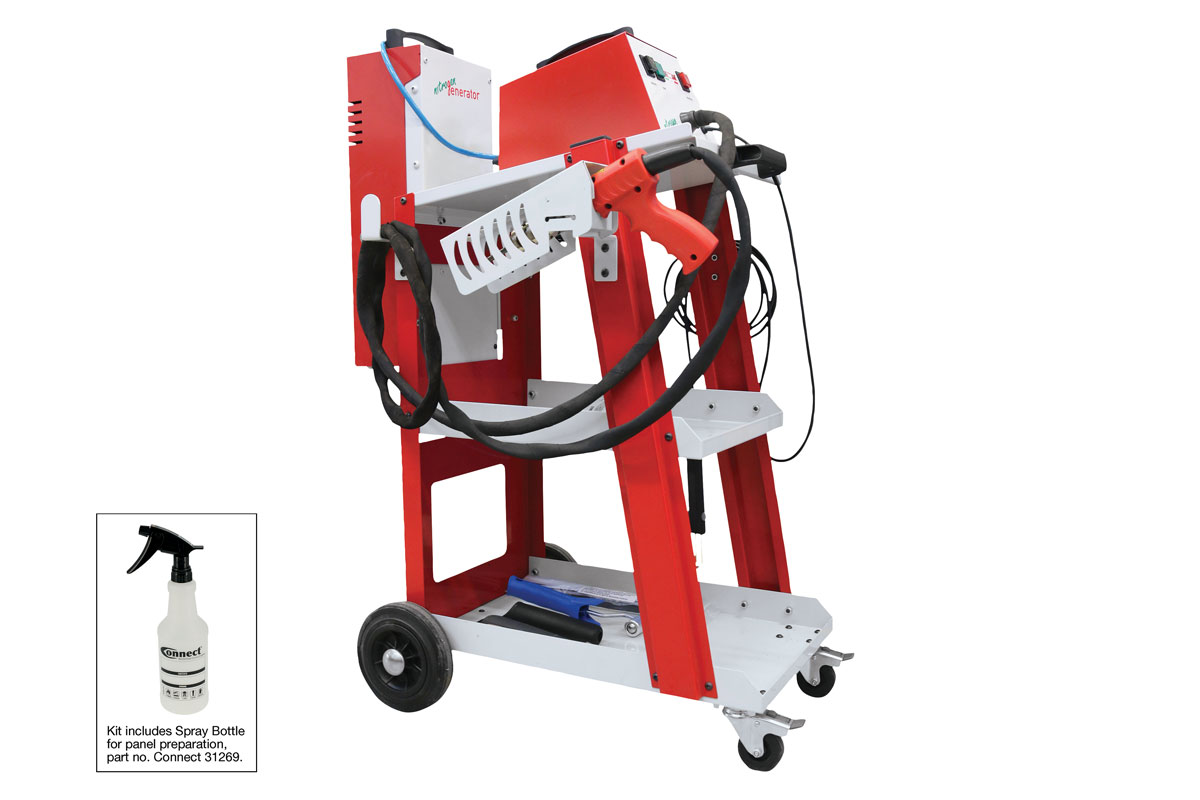 - The welder comes complete with a set of plastic consumables including a scraper and roller to finalise the repair, together with a reusable trigger spray water bottle for panel preparation.