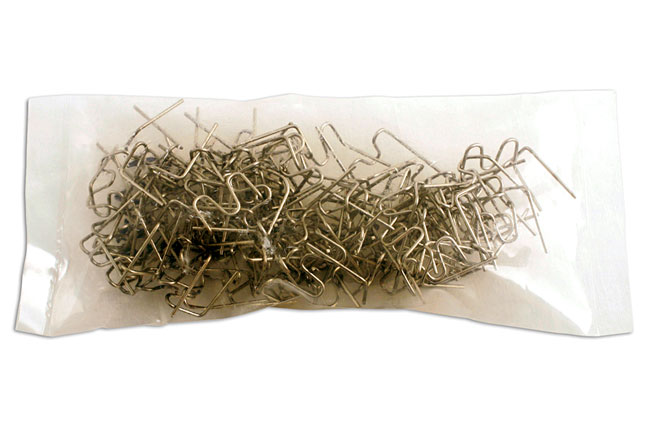 Stainless steel W shape staples for use as part of a plastic repair with a hot stapler system.