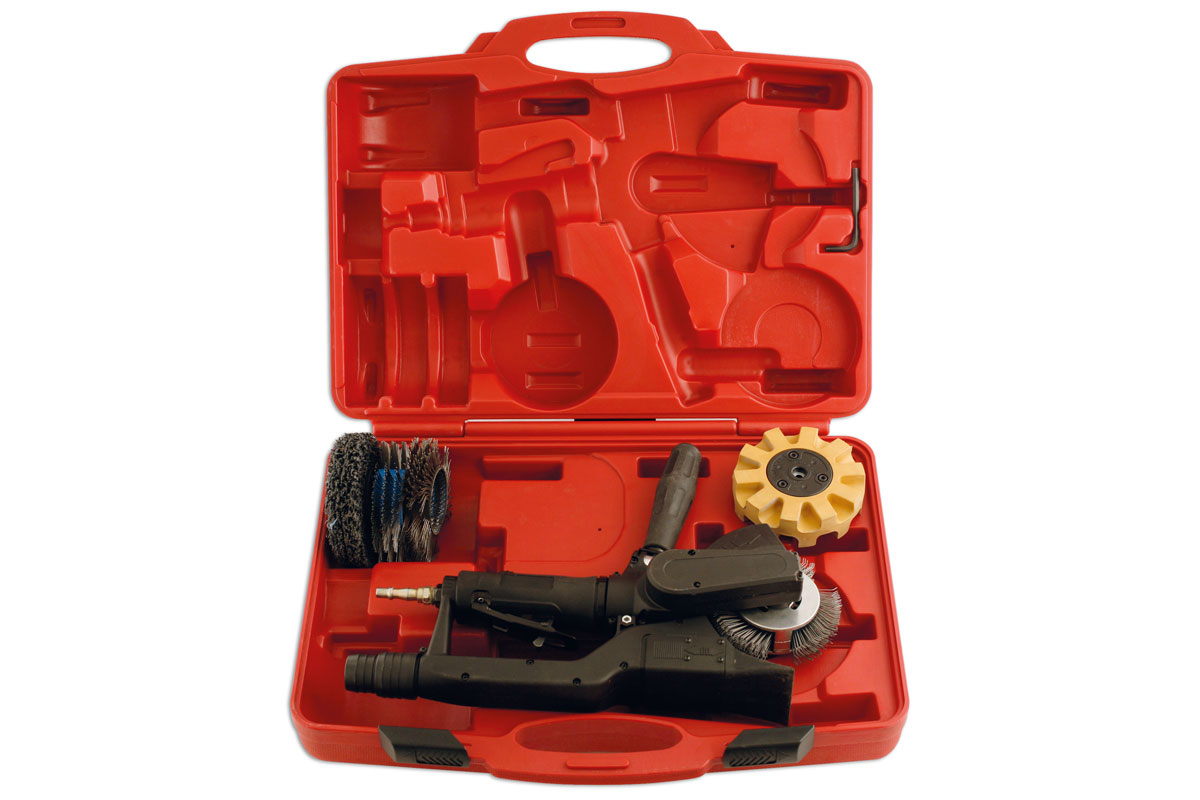 An easy to use air-powered surface preparation tool suitable for use on a variety of substrates including metals, rubber and plastics. Excellent on steel and softer metals; will remove contaminants, rust, etc, and leave a bright metal surface. With the included stripe off eraser perfect for removing pinstripes, vinyl stickers, stripes, decals, etc, on painted metal surfaces, plate glass, aluminium and glassfibre.