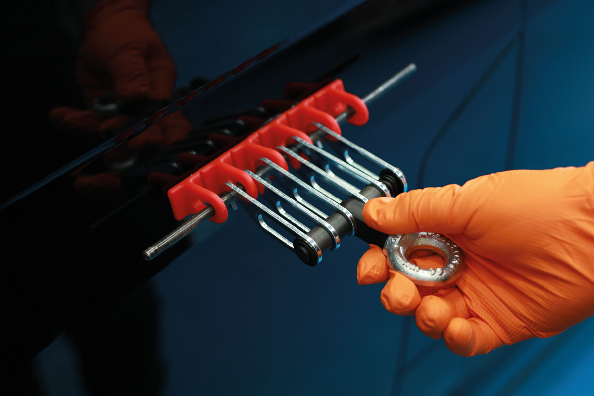 Three strips of red flexi multipads for use with glue pulling systems, such as Hot Glue Dent Remover (Part No. 92308).