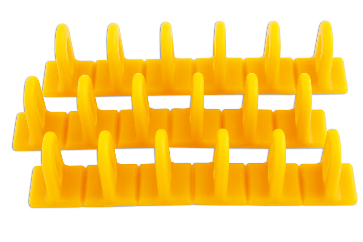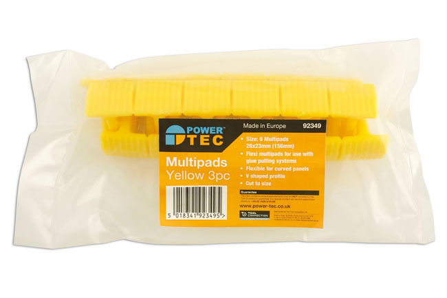 Three strips of yellow flexi multipads for use with glue pulling systems, such as Hot Glue Dent Remover (Part No. 92308).