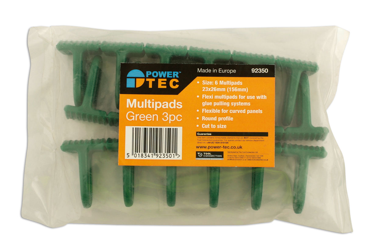 Three strips of green flexi multipads for use with glue pulling systems, such as Hot Glue Dent Remover (Part No. 92308).