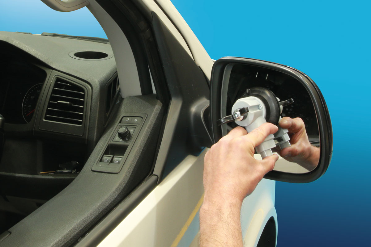 A broken door mirror glass is a common problem and although a replacement mirror glass will be readily available, fitting it can be a fiddly job, an awkwardly shaped mirror needing both hands just to hold it. This new mirror glass positioning tool from Power-TEC (part no: 92390) lets you accurately position the mirror glass with one hand leaving the other hand free to secure the glass.