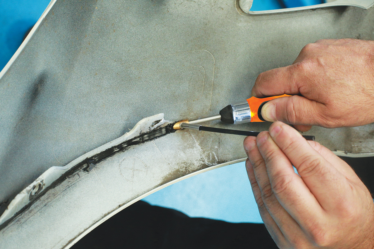Due to the high costs associated with the replacement of plastic panels (bumpers, inner wings, headlamp bodies, engine covers, motorcycle bodywork, etc), this new rechargeable battery-powered plastic welder repair kit from Power-TEC (part number 92549) was developed to repair small to medium sized damage that could render a panel unusable.