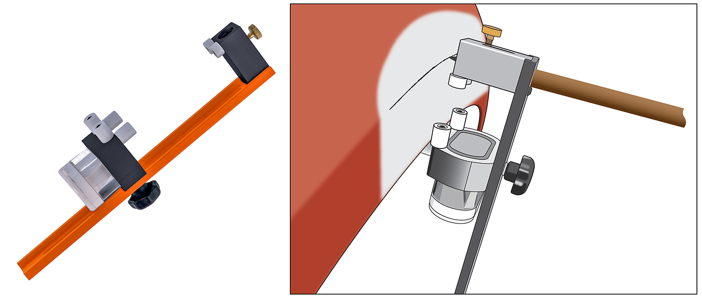 Für genaues und schnelles Anbringen von Markierungen an Radläufen und Karosserieteilen, wobei die vorhandenen Kurven und Karosserieausformungen genutzt werden. Mit integrierter Anspitzvorrichtung und federbelastetem Stifthaltemechanismus.