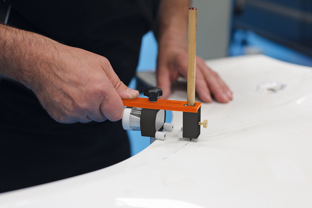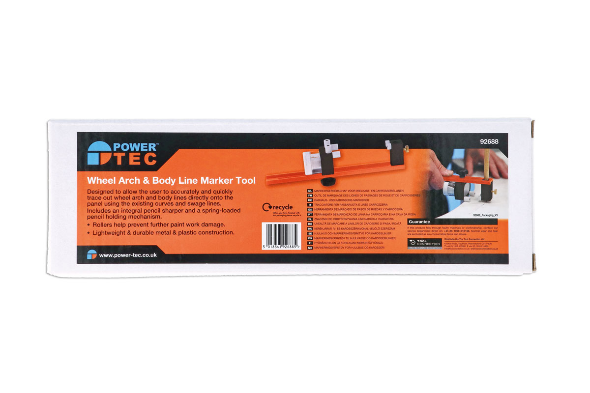 Designed to allow the user to accurately and quickly trace out wheel arch and body lines directly onto the panel using the existing curves and swage lines. Includes an integral pencil sharper and a spring-loaded pencil holding mechanism.