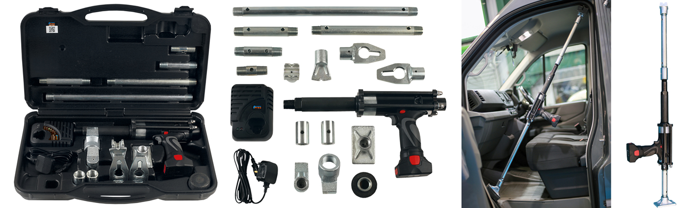 Free from hoses or cables, the portable Electro Power push-pull system from Power-TEC (part number 92691), is powered by a Li-ion 14.4V 2.0Ah battery, and provides significant pushing, pulling, and spreading capabilities for various tasks. With a powerful five-tonne capacity and a 130 mm piston stroke, this compact tool delivers substantial force for tasks demanding serious metal reforming. Whether it's straightening and re-aligning door aperture frames, repairing panel work or dent pulling, this powerhouse from Power-TEC is up to the challenge. Its space-saving dimensions and the lack of external cabling or hydraulic pumps and pipes makes this system ideal for use in restricted spaces.