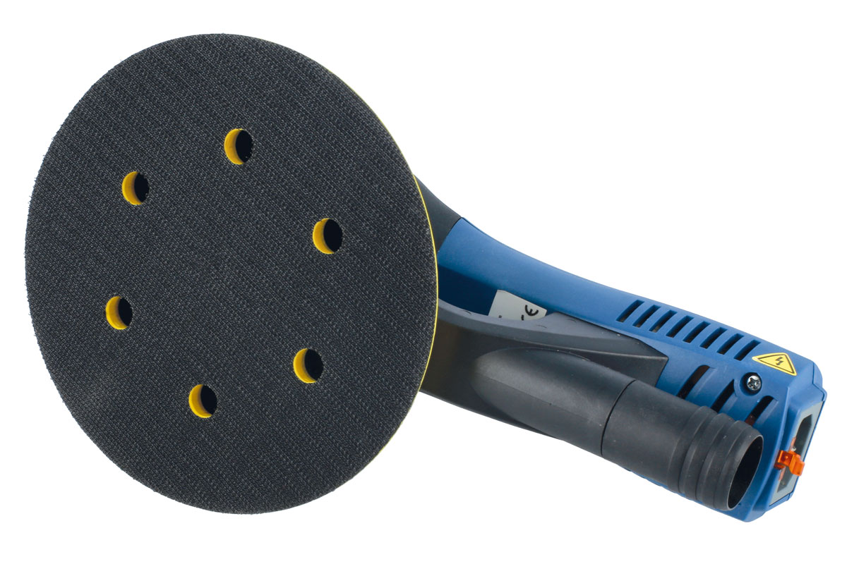 - Elektroschleifer mit variabler Geschwindigkeit, für Schleifblätter mit Klettbefestigung, für den Einsatz mit zentralisierten Staubabsaugsystemen.