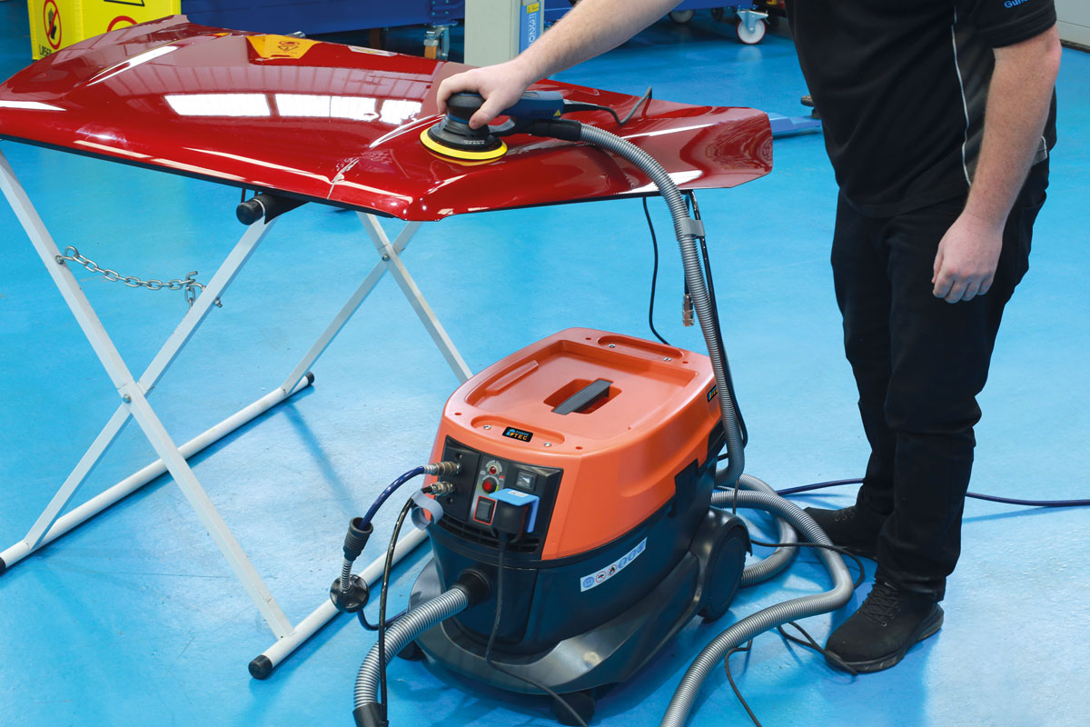 - Variable speed dual-action electric sander, with hook & loop backing pad, for use with centralised dust extraction systems.