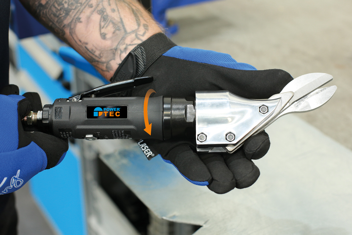 Accurate and effortless sheet-metal cutting with these new Power-TEC In-Line Pneumatic Air Scissors