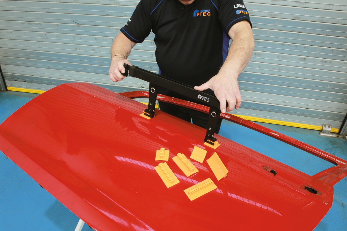 Part of The Power-TEC lateral puller range. The 92734 450mm lateral puller is designed to help stretch dents out. The puller works by applying a spreading force to relieve the tension in the metal during glue pulling and other dent removal methods. For use with Power-TEC glue pads 92736 & 92737.